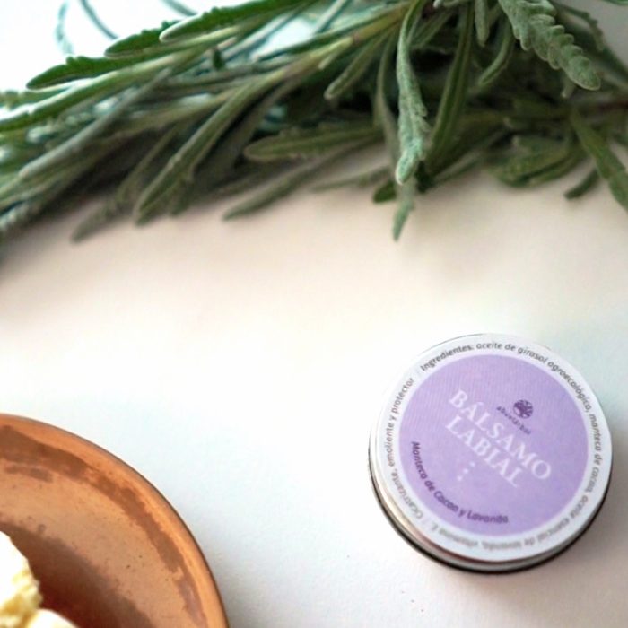 Aceite de girasol agroecológico, manteca de cacao, aceite esencial de lavanda, vitamina E