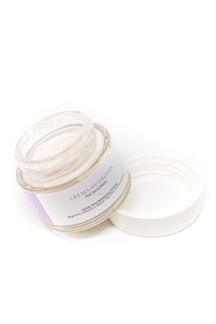 Emulsión para uso nocturno, contiene manteca de karité y aceite de rosa mosqueta que le dan un gran poder nutritivo y regenerador.