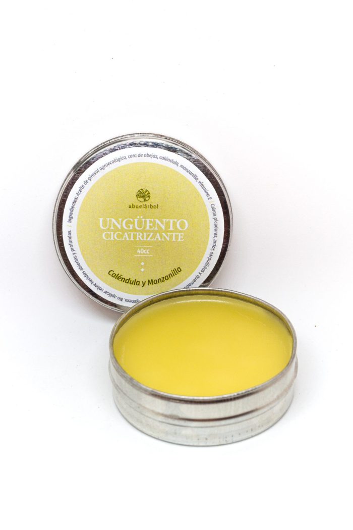 Este ungüento es un preparado oleoso de caléndula y manzanilla, con efecto cicatrizante y regenerador para la piel.